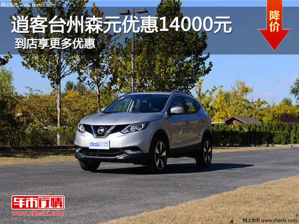 【网上车市台州站 】:东风日产逍客一款热门城市型SUV,其外形、油耗、通过性以及安全配置方面都有着不错的表现。近日,编辑从椒江森元获悉:店内逍客 现车销售,颜色可选,目前购车可享14000元优惠。