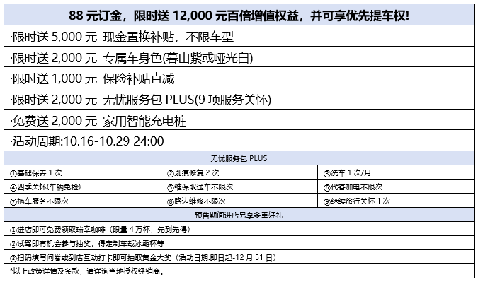 2025年10月16日,北京现代首款纯电平台SUV——EO羿欧正式开启预售,预售价格:13–15万元。伴随预售价的发布,北京现代也同步推出了EO羿欧极具诚意的限时权益:支付88元订金,限时送12,000元百倍增值权益,并享优先提车权。
