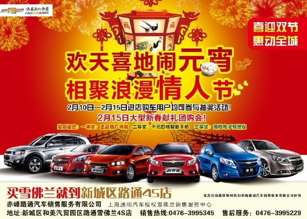 【网上车市赤峰站讯 】买雪佛兰就到新城区路通!! 新年新车新选择!! 欢天喜地闹元宵,相聚浪漫情人节,喜迎双节,惠动全城,全系车型超低价销售,2月10日-2月15日到店购车均可参与抽奖,正品原厂导航,千元智能手机,高档预警仪等多重大礼等您来取!