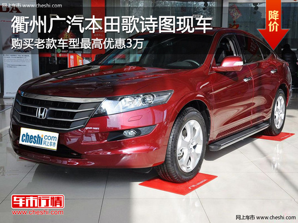 【网上车市衢州站讯 】目前,网上车市编辑从衢州广汽本田4S店获悉,即日起-7月底,到店购买歌诗图老款车型最高现金优惠3万元,店内部分现车销售,个别颜色需提前预订,想获得更多优惠的网友可在本文下方“车市杀价团”填写报名。感兴趣的朋友来电咨询!具体售价详情如下: