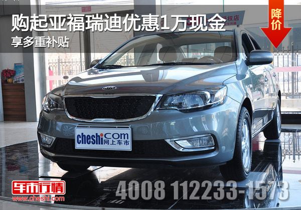 【网上车市 天津站讯 】日前,编辑从天津地区东风悦达起亚银诺威臣4S店获悉,目前到店购买福瑞迪直降1万元,置换购车享4000元补贴,上牌享3000元补贴,现车销售。
