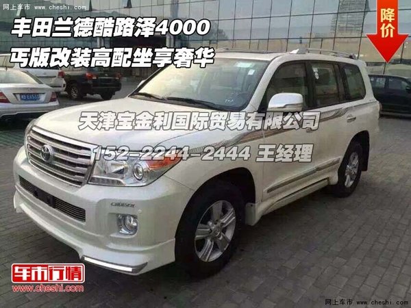 【网上车市 天津滨海行情.原创 】近日获悉,2015款丰田酷路泽4000现车到店,天津现车销售丐版改装坐享奢华新年新报价最低仅48.5万,颜色齐全手续正规,更多优惠促销活动请致电天津宝金利国际贸易有限公司,机会难得欲购从速,具体详情请与经销商联系,24小时购车咨询电话:152-2244-2444 王经理