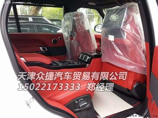 【网上车市 天津滨海行情.原创 】近日,新款路虎揽胜汽油创世加长版5.0T新车到港,白色外观红色内饰黑色撞顶揽胜行政版价格配置参数油耗,四座顶配拒绝中间加价真实车源手续完善,价格透明售后三包,购车手续齐全;本店承诺无任何附加条件,直接销售全国各地,合格证发票当天拿走,购车可日办理上牌业务异地可上牌,天津众捷汽车贸易有限公司独家解读各种进口车型降价讯息,实时价格一手掌握;感兴趣的朋友不妨到店详询!购车咨询电话:15022173333 郑经理 具体车型以及价格如下: