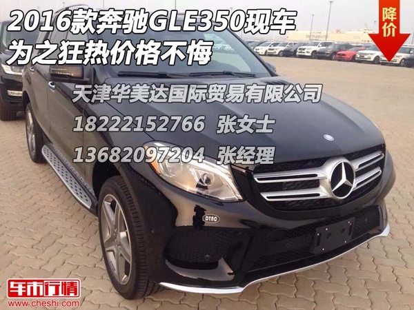 【网上车市 天津滨海行情.原创 】近日获悉,2016款奔驰GLE350现车到店,天津现车为之狂热价格不悔,从A柱往后,车身上就很难找到倾斜的线条了,直棱直角才能体现其精髓,颜色齐全手续正规,更多优惠促销活动请致电天津华美达国际贸易有限公司,机会难得欲购从速,具体详情欢迎来电咨询,24小时购车咨询电话:18222152766 张女士 13612034098 张萍 13502166364 张经理