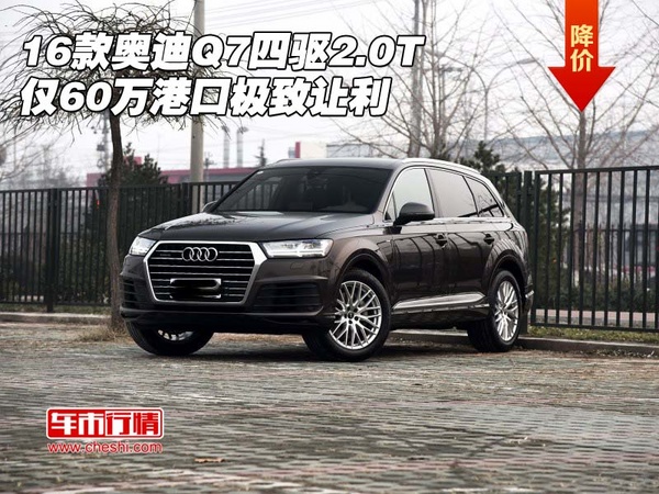 【网上车市 天津滨海行情.原创 】近日,2016款奥迪Q7四驱2.0T降价优惠,2016款奥迪Q7四驱2.0T仅60万港口极致让利,专业全时动力四驱品质,畅享豪华配置霸气SUV空间。更多自贸区低价让利尽在天津海鑫昌国际贸易有限公司,机会难得欲购从速,具体详情欢迎来电咨询,购车咨询电话:18920587778