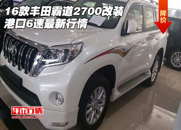【网上车市 天津滨海行情.原创 】近日,2016款丰田霸道2700降价优惠,2016款丰田霸道2700改装,港口6速最新行情,专业全时动力四驱品质,畅享豪华配置顶级越野空间。更多自贸区低价让利尽在天津中汽顺合国际贸易有限公司,机会难得欲购从速,具体详情欢迎来电咨询,购车咨询电话:15802272129