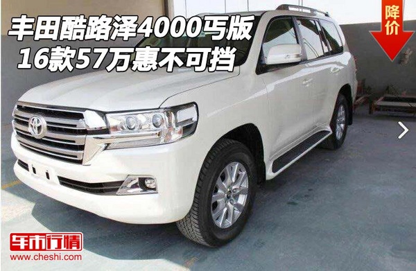 | 2016款丰田酷路泽4000丐版 | 电议 | 57万 | 优惠 | 现车 |