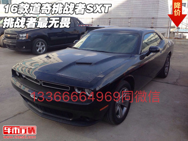 【网上车市 天津滨海行情.原创 】近日获悉:2016款道奇挑战者SXT现车到店,道奇挑战者采用经过重新设计升级的整车运动套件,悬挂调校也会更加偏硬一些。还采用轻量化的设计,整车质量将会较现款车性有所降低,以得到更好的加速系性能。天津市车亨通国际贸易有限公司最新实时价格一手掌握;感兴趣的朋友不妨到店详询! 联系电话:13366664969 具体车型以及价格如下: