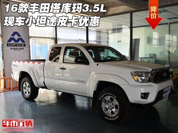 【网上车市 天津滨海行情.原创 】近日获悉,16款丰田塔库玛3.5L现车小坦途皮卡优惠,超值特惠限时秒杀,颜色齐全手续正规。最新实时价格一手掌握;更多优惠促销活动请致电天津盛源汽车贸易有限公司,机会难得欲购从速,具体详情请与经销商联系,24小时联系电话:15122314613 王经理