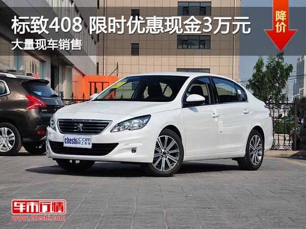 【网上车市 武汉站 】近日,编辑从武汉地区了解到,东风鸿泰南湖武汉汽车销售服务有限公司标致店408现金优惠3万元,颜色可选,具体如下