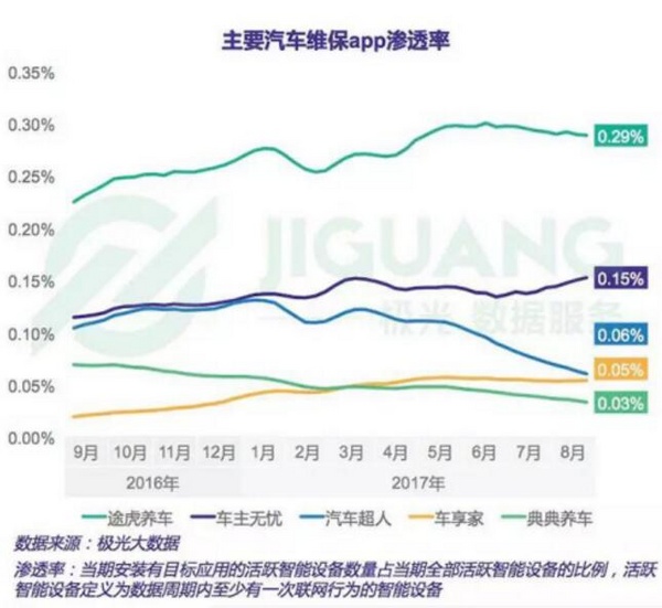 此外,在极光大数据发布的《2017年中国汽车后市场app研究报告》中,我们还可以发现,