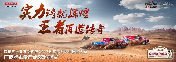 夺冠达喀尔中国赛并不是一个终点,而是江西五十铃又一历史性的新起点, 2017年第12届阿拉善英雄会即将拉开帷幕。届时,江西五十铃将参与其中,征战具有挑战难度的阿拉善T3挑战赛,与各路豪杰一同尽情越野,共谱英雄的赞歌!【网上车市长沙站 】