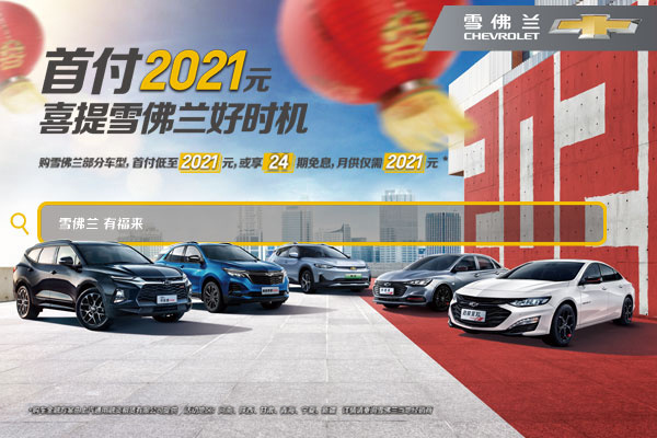 即日起至2021年1月31日,首付2021元 喜提雪佛兰好时机,雪佛兰西北区,购雪佛兰部分车型首付低至2021元或享24期免息,月供仅需2021元。